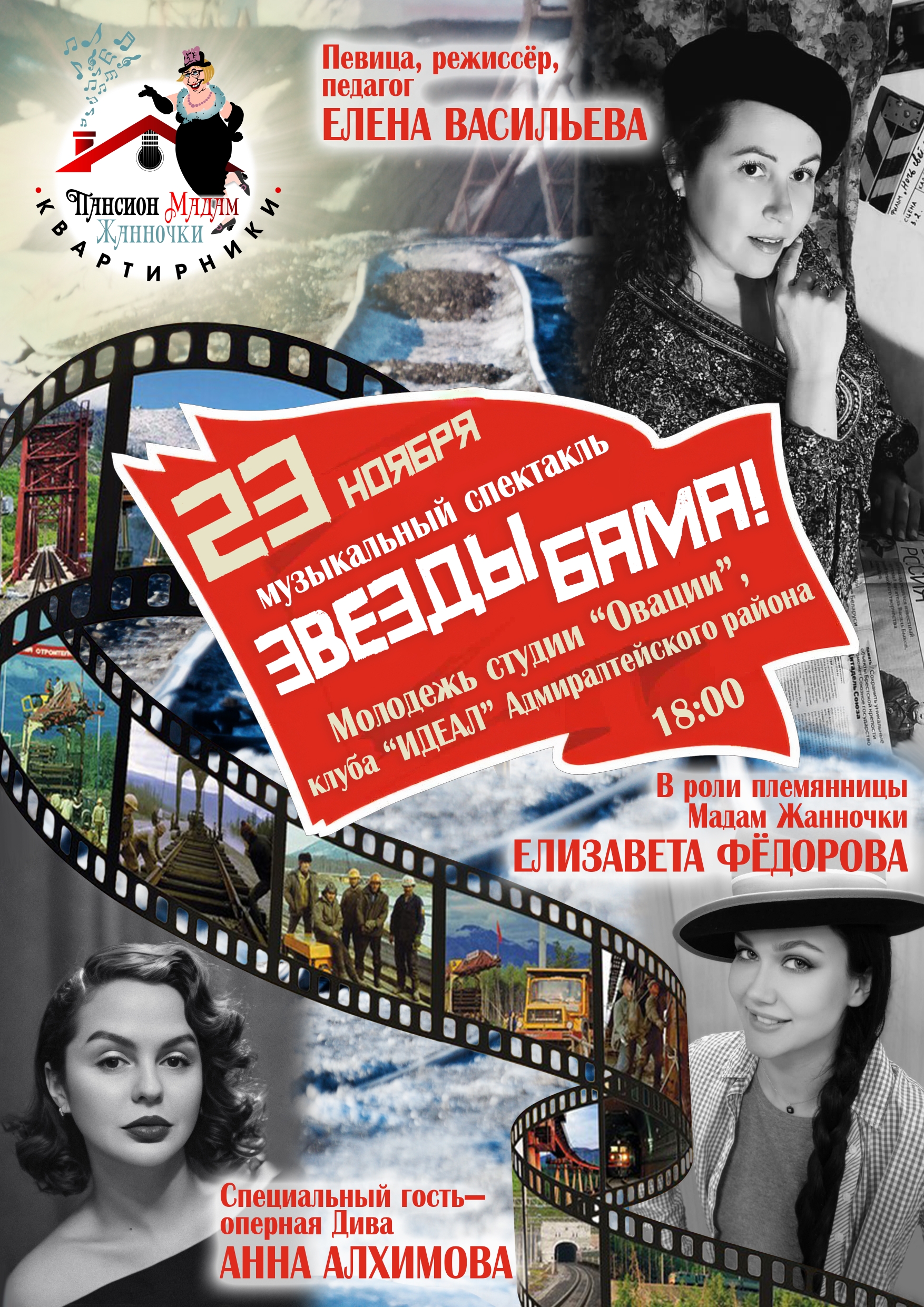 Для тех, кто любит путешествия во времени двери нашего Квартирника "Пансион Мадам Жанночки" откроются 23-го ноября в 18.00! Перед вами оживёт территория вечной мерзлоты Байкало-Амурская магистраль!.